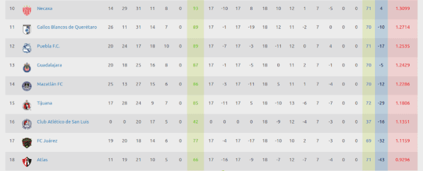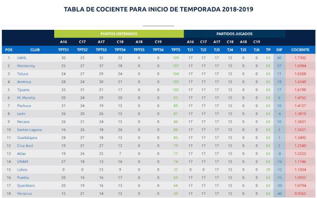 Tabla de cocientes liga mx 2018. Culmin la jornada 7 del Apertura 2018 de la Liga MX con pocos cambios en la parte alta de la tabla general. Cmo iniciar la tabla de cocientes para la. Tabla de descenso 2016Tabla de descenso 2017Tabla de descenso 2018 tabla de porcentajes tabla de cocientes.
